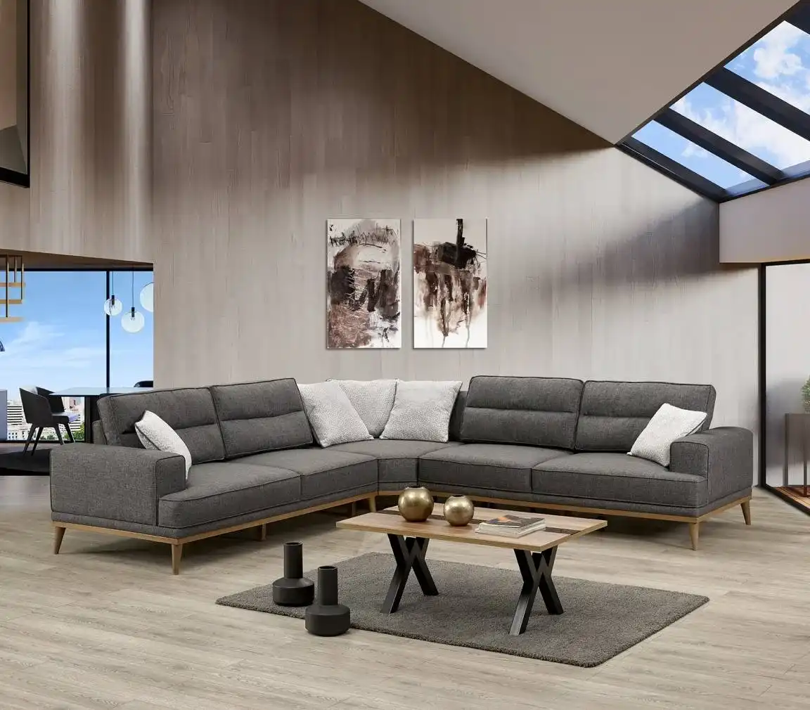 Polo Köşe Takımı, ergonomik tasarımıyla uzun süreli oturma seanslarında bile rahatlığınızdan ödün vermenizi engeller. Yumuşak ve kaliteli kumaş kaplaması, teninize değdiğinde ipeksi bir his sunar. Geniş oturma alanı, aileniz ve misafirleriniz için bolca yer sunar ve herkesin rahatça oturabileceği bir alan yaratır. Detaylara gösterilen özen, takımın şıklığını ve kalitesini gözler önüne serer.